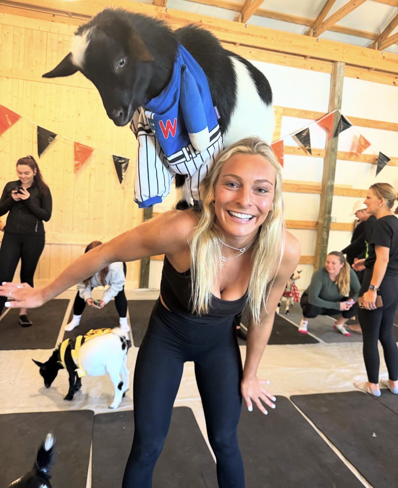 Goat yoga is a unique, fun, and hilarious twist on a traditional yoga class that incorporates goats. The idea is that the goats, often playful and curious, interact with participants during the session, which can help reduce stress and add a fun element to the practice. The animals may jump on participants’ backs, wander around the mat, or just hang out and let you pet them.